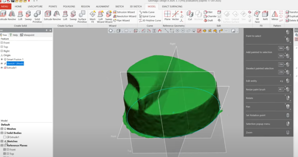Последний шаг — перенос модели в Geomagic Design X. Здесь уже не просто сетка, а полноценная CAD-модель: